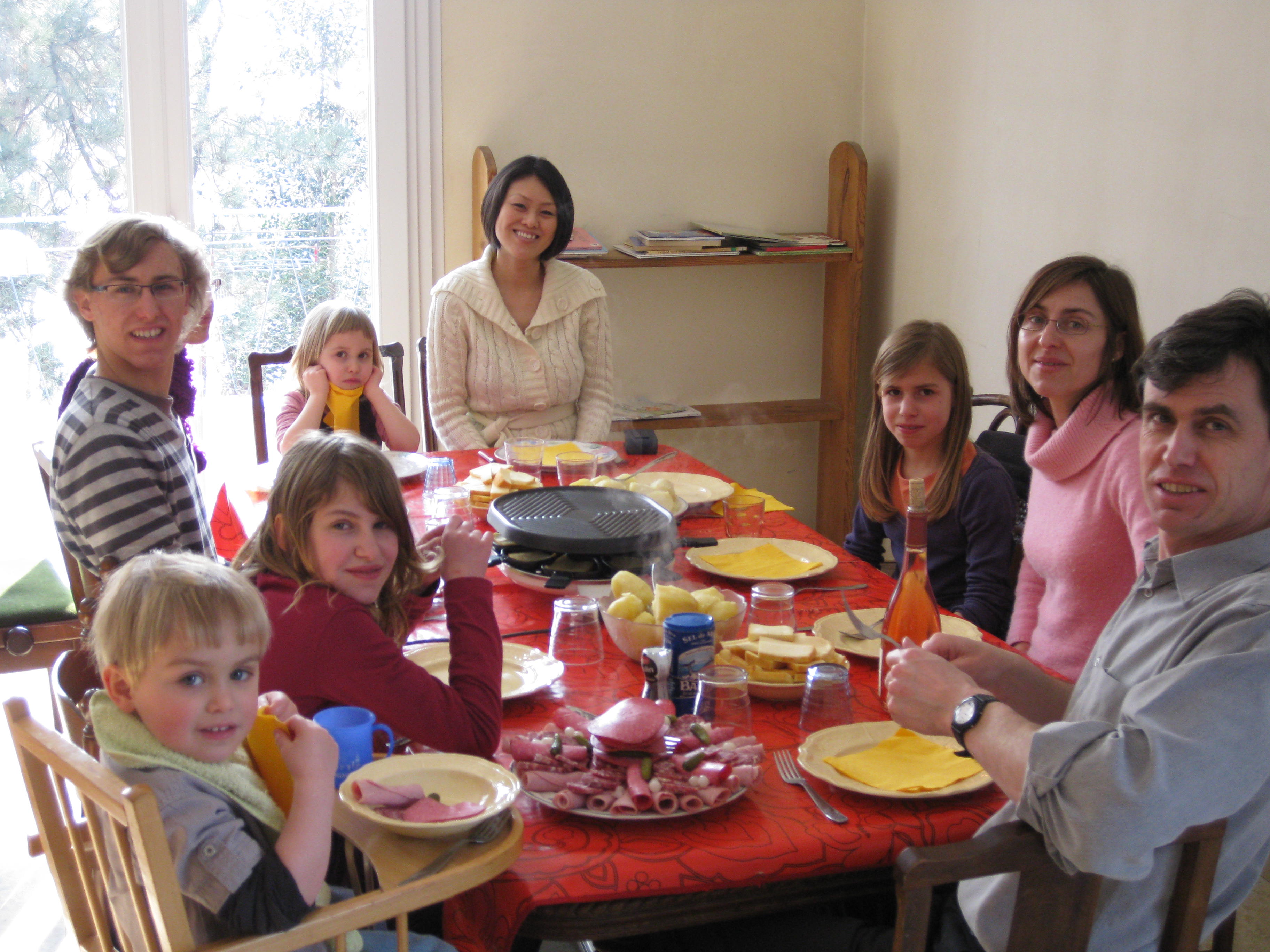 Craig is the youth leader of the church, who has been faithfully ministering to the youth as long as we have known him. He was very helpful, particularly to Miho, interpreting her testimony as well as her Sunday sermon. And he did a fantastic job! He is blessed with 6 kids, and two of them lead worship in the youth group. The family had us over for a special Sunday lunch and served us raclette with a huge plate full of cold cut meats and potatoes. Raclette refers to this cheese dish that you place a sheet of a special cheese on a hot grill to melt it. You scrape the cheese onto cooked potatoes and eat it with meats. Mmmmm, yummo!