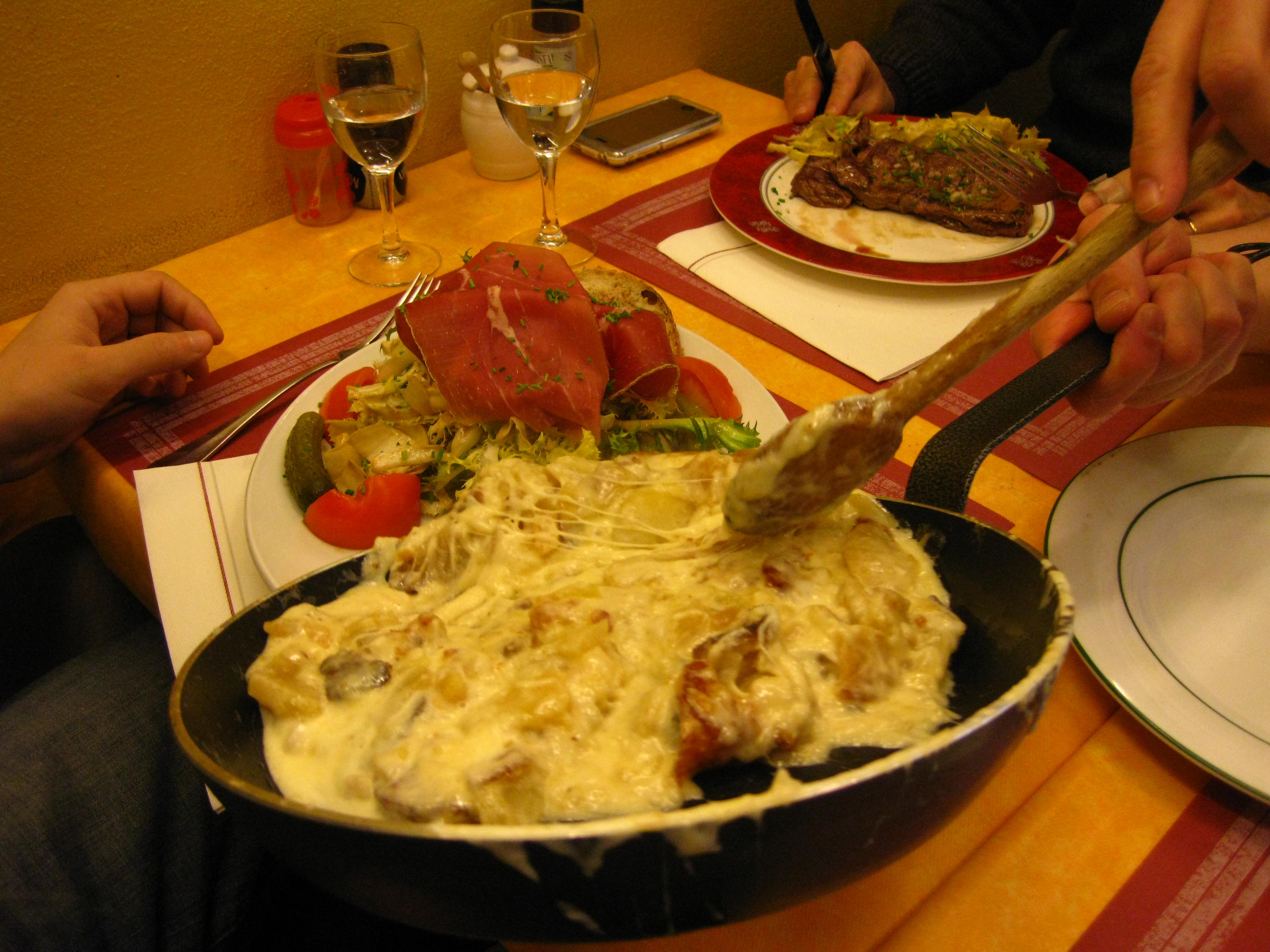 Two of the church leaders also took us out for a regional cuisine of Clermont-Ferrand. One of them, Vincent, once came to Boston for a conference and we had dinner together. The other one, Yannick, loves Japan. He has recently been there and may have an opportunity to return later this year. (His daughter is such a sweetheart. She learned some Japanese words to make conversation with Miho.) Grant had some special ham and Miho had veal, both served with cheesy potatoes called tartuffe. The baby seemed to be very satisfied as she was dancing in Miho’s belly after the meal.