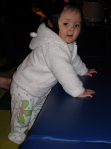 On a lighter note, Allie began crawling today and can stand up holding onto something! Now, nothing is safe as she invades the bookshelf, goes after our slippers, and will creep on anything in her sight 🙂 Let the fun begin…..